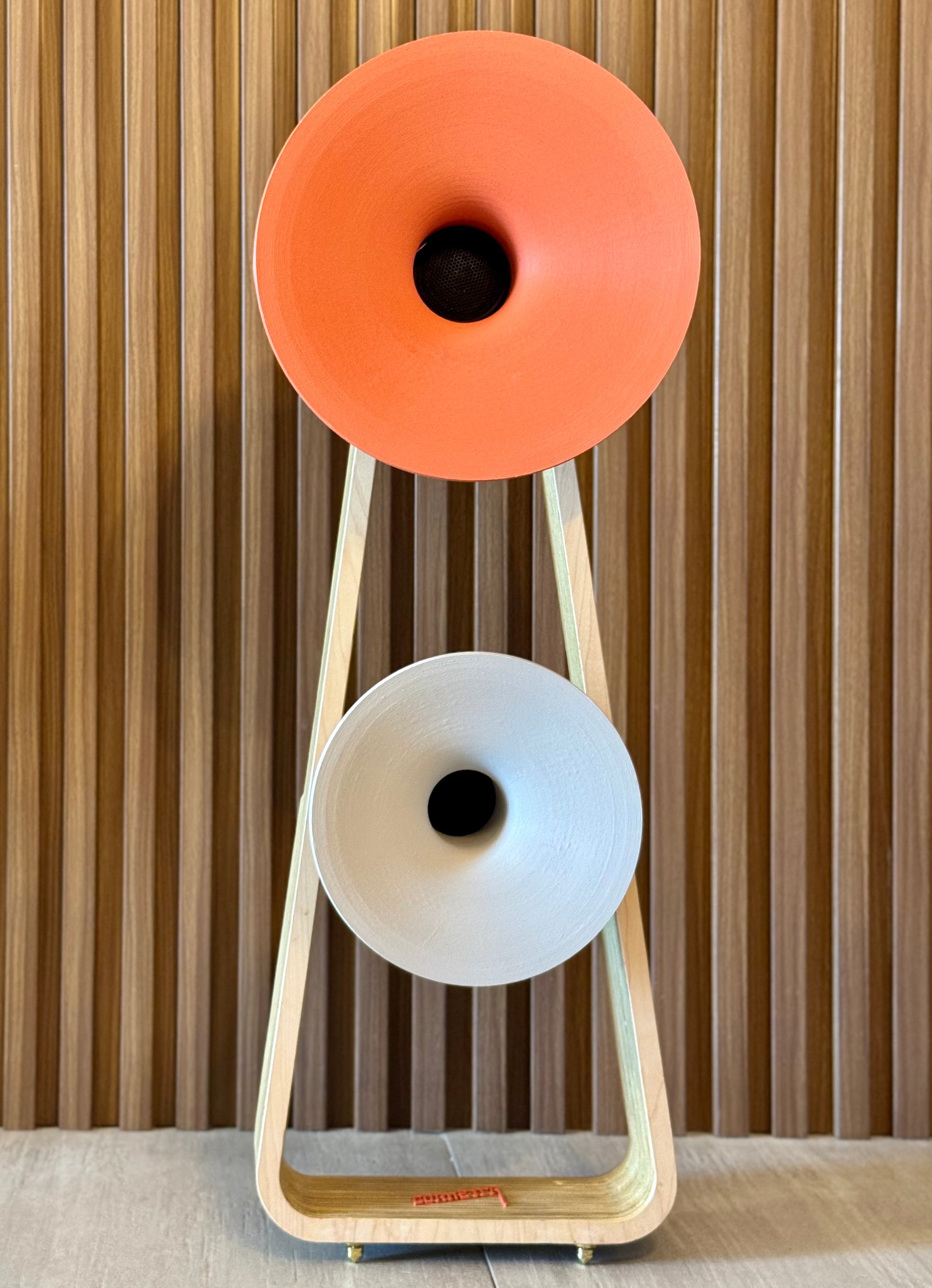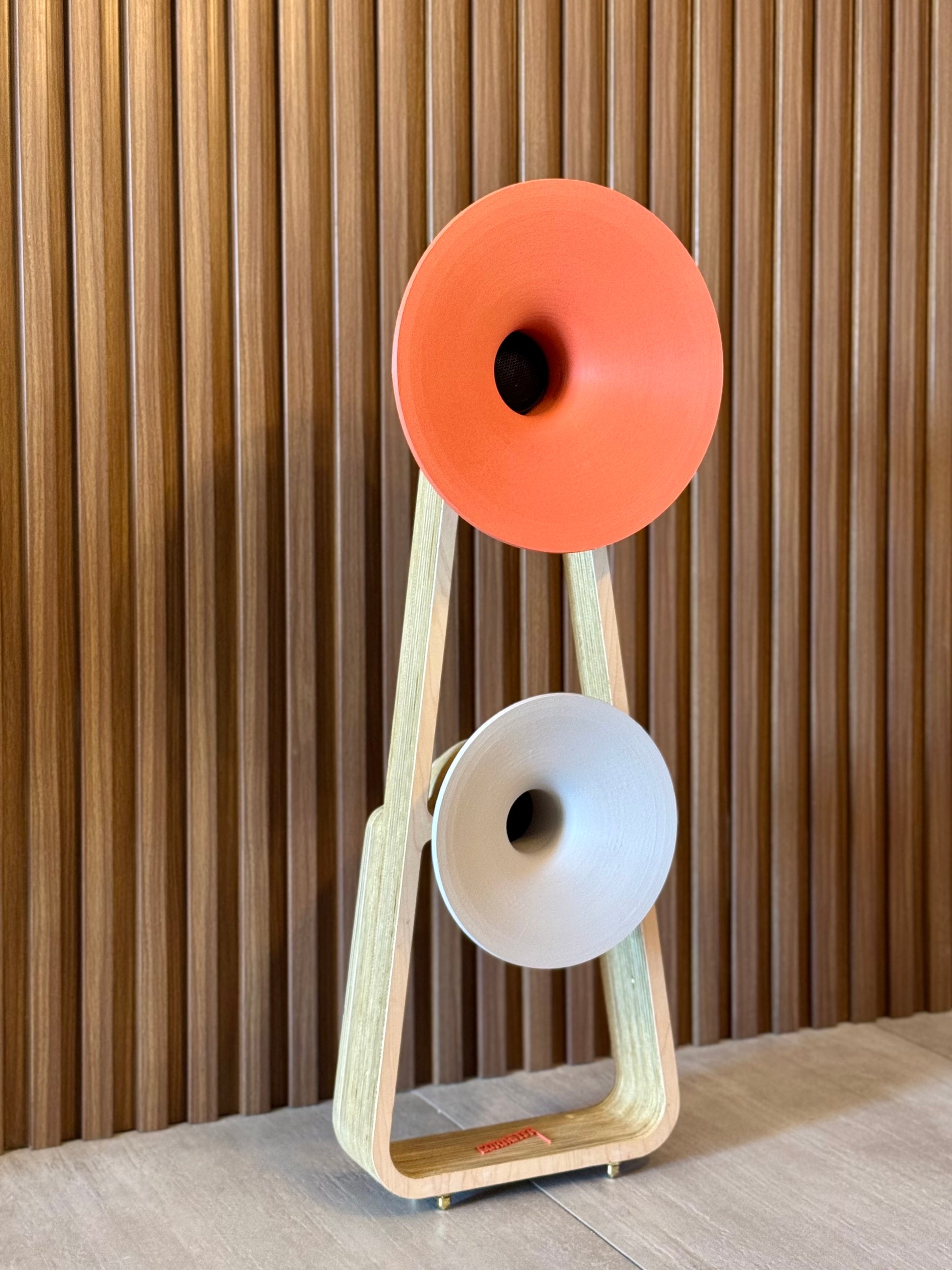 The Harmony Duo represents the pinnacle of Cornetta’s design philosophy — a stereo loudspeaker that transforms sound into sculpture. With its dual handcrafted horns and wooden frame, it creates a striking architectural presence while delivering a full, immersive acoustic experience. Each unit is carefully assembled in Puerto Rico using precision 3D printing and fine materials, balancing warmth, clarity, and visual harmony. The result is both an instrument and an artwork — a statement piece that elevates any space through design and sound.