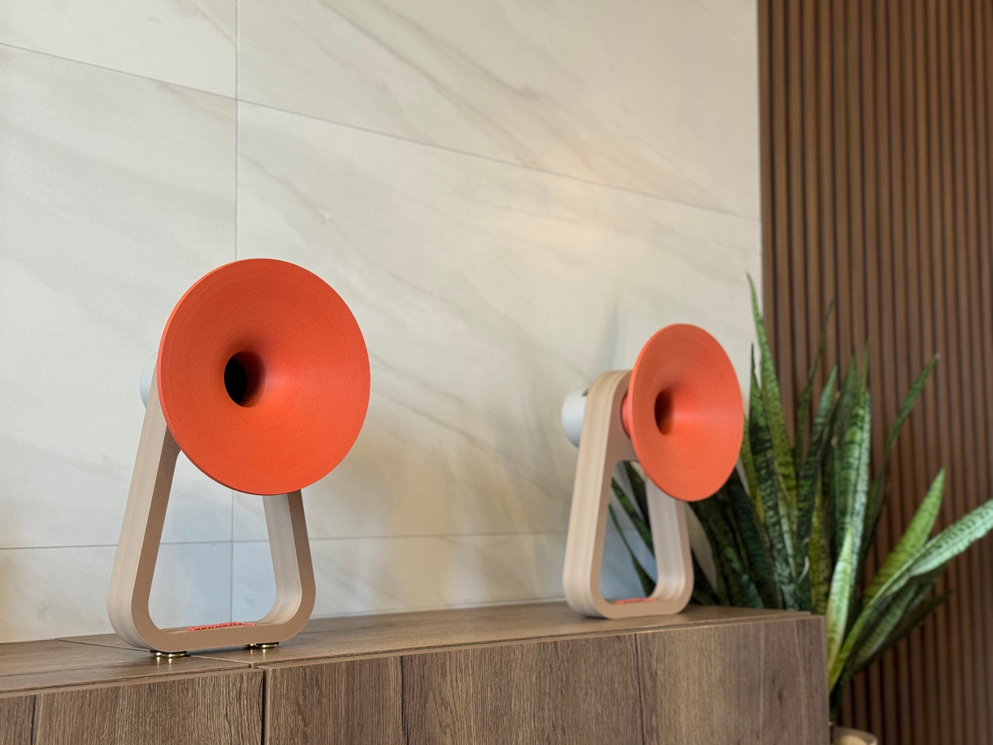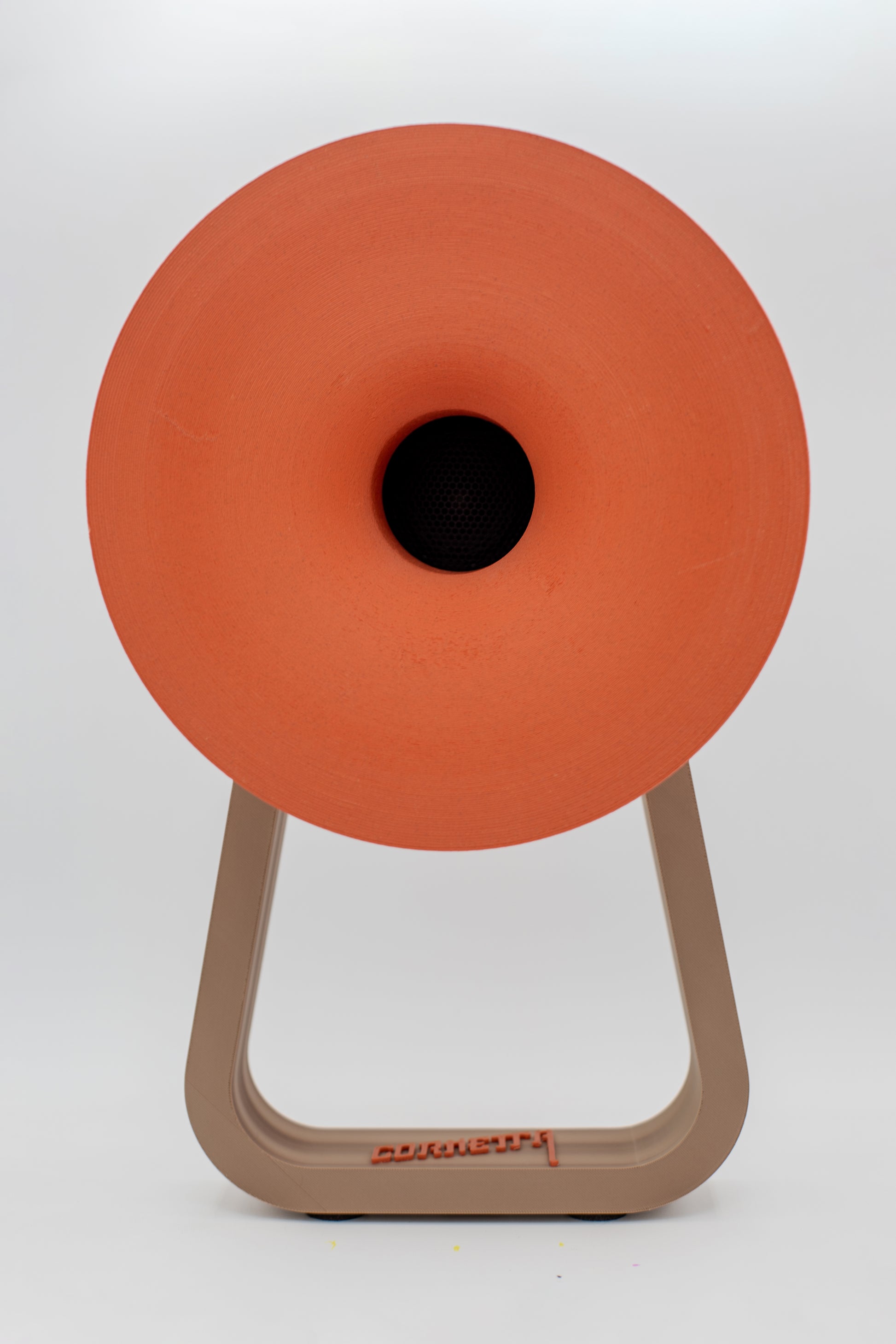 The Harmony Single distills the essence of Cornetta into a more compact, versatile form. Designed as a standalone speaker, it offers the same sculptural presence and acoustic warmth as the larger models, now ideal for smaller spaces or paired setups. Each piece features Cornetta’s signature handcrafted horn, precision 3D-printed and mounted on a minimalist frame that highlights its geometry and color. The result is a powerful yet elegant sound object — a fusion of art, design, and technology that celebrates local craftsmanship and timeless aesthetics.