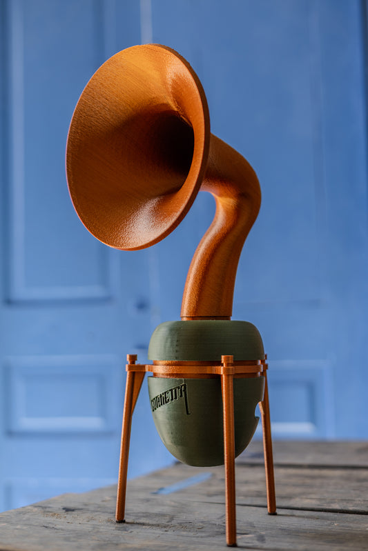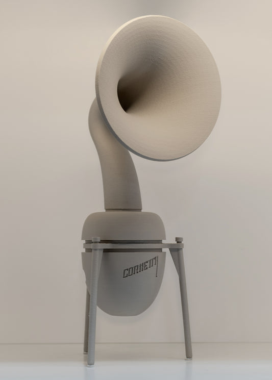 Elevate your audio experience with the Cornetta Bluetooth Speaker—where classic design meets modern innovation, brought to life by a skilled team in Puerto Rico. Rediscover the joy of music, reimagined.